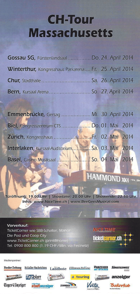 Die brillante Live-Band und die temperamentvolle Dance-Crew machen MASSACHUSETTS zu einem Erlebnis für Auge und Ohr.